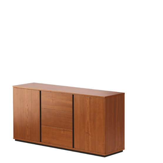 - Fabricado em aglomerado com folha de madeira de pinho cor mel e pormenores cor wengué