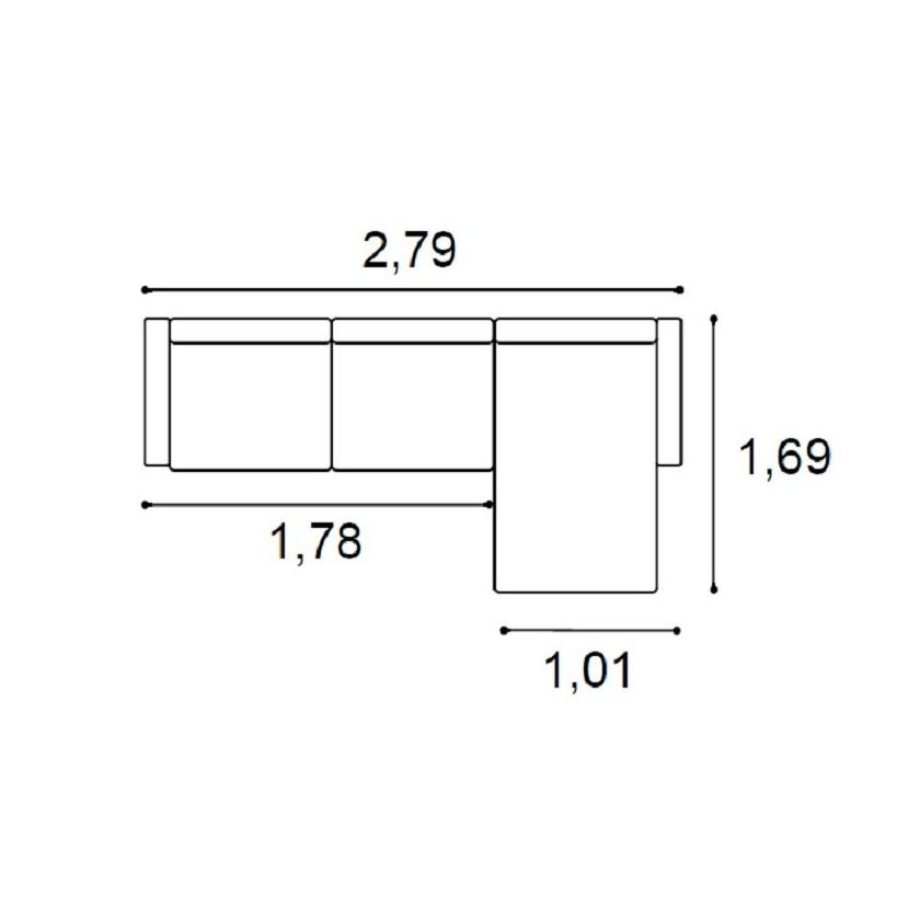 | Chaiselongue Karol | 2,79 x 1,69 ( chaise) x 0,89 (altura) |